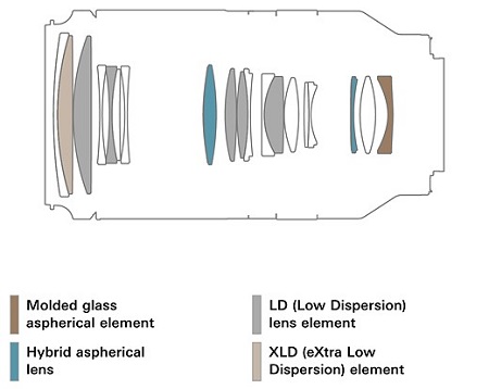 6 thấu kính XLD (eXtra Low Dispersion) và LD (Low Dispersion)